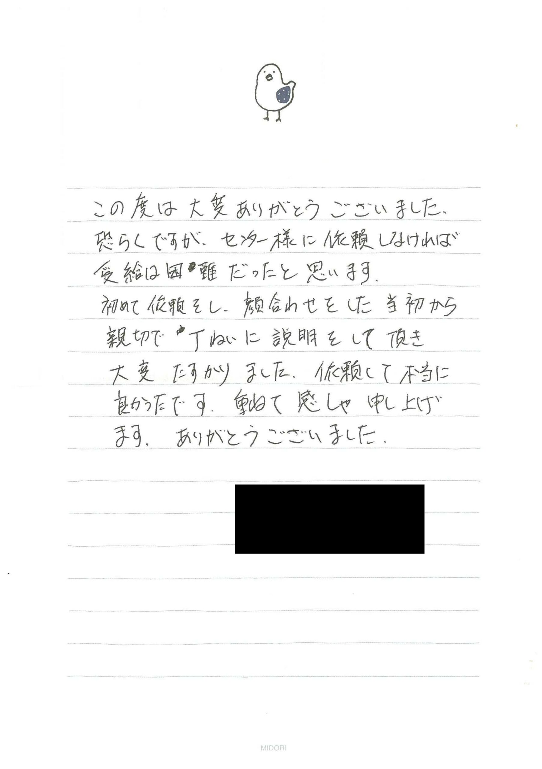 新潟障害年金相談センター > 感謝のお手紙 > お客様の声362