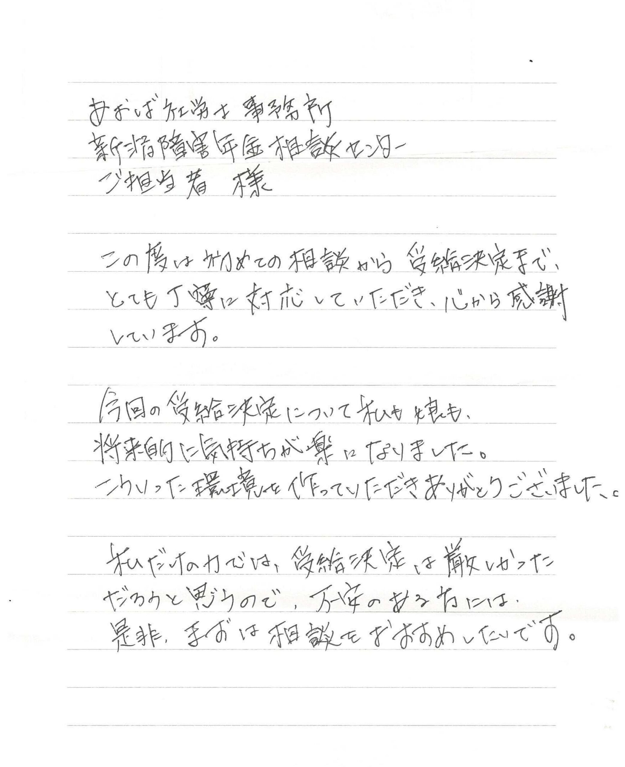 新潟障害年金相談センター > 感謝のお手紙 > お客様の声363