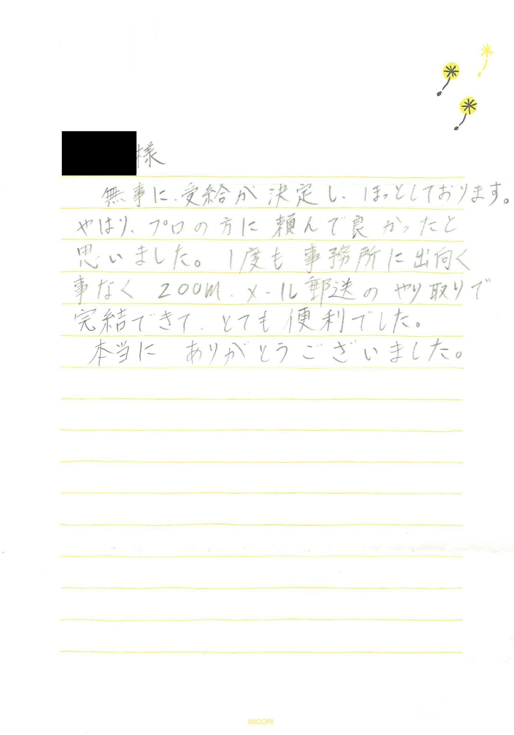 新潟障害年金相談センター > 感謝のお手紙 > お客様の声368